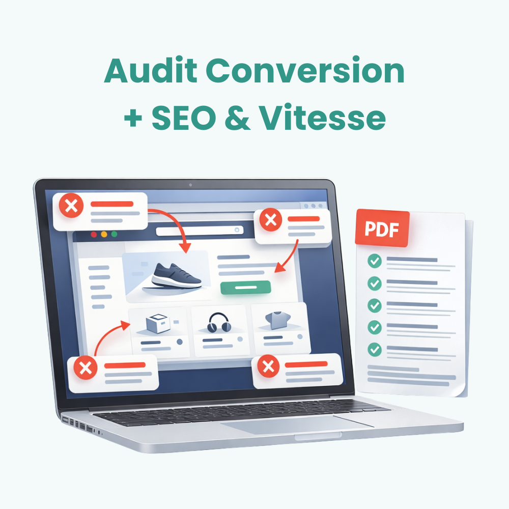 Avec cet audit Conversion + SEO, vous obtenez une analyse complète et objective de votre site e-commerce.