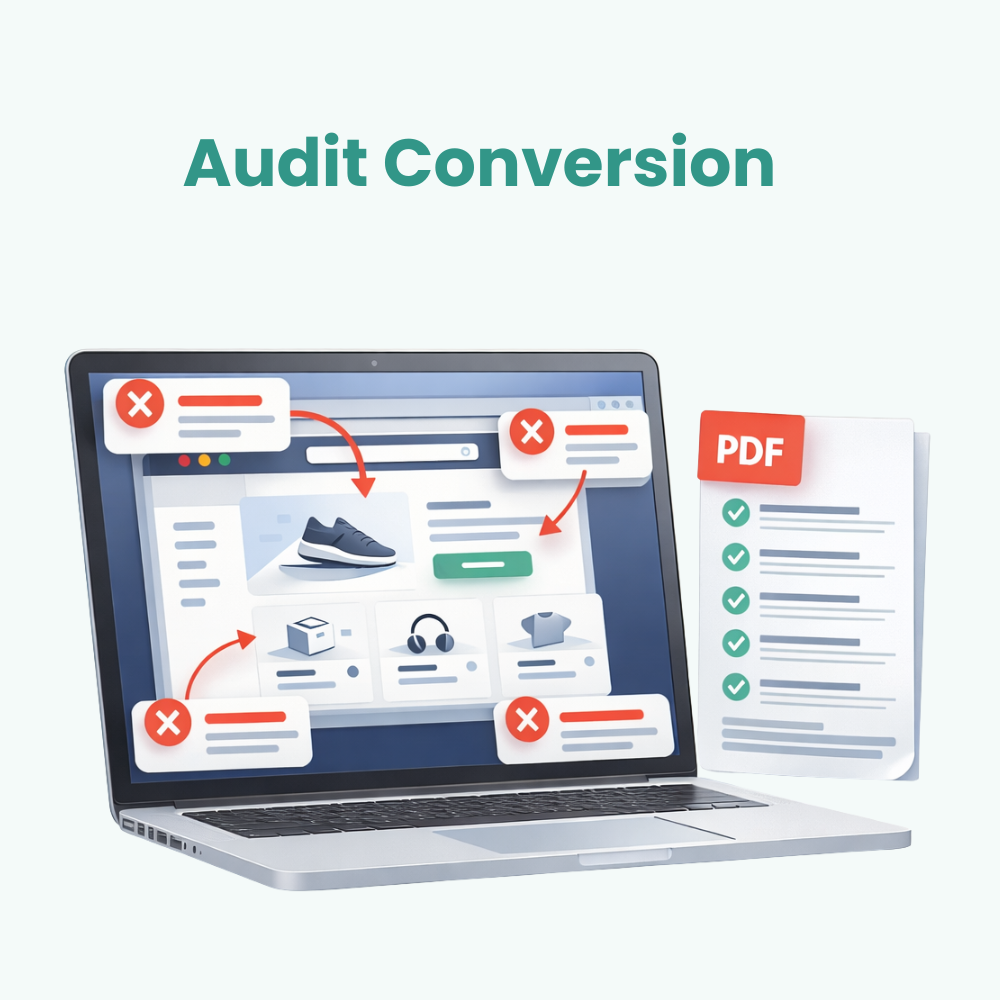 L’audit est conçu pour les sites e-commerce (Shopify, WooCommerce, Prestashop, etc.) qui souhaitent améliorer leurs ventes.
